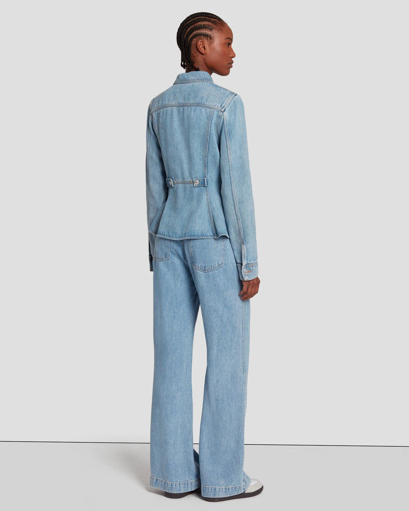 7 For All Mankind Denim Lustre Trucker Jacket In Volcan Blue