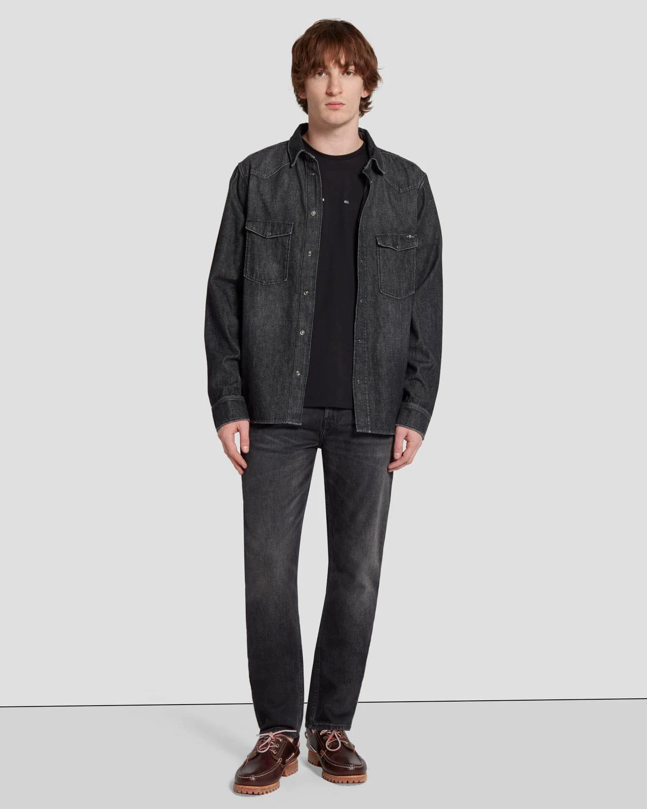 Our new Everyday 7 line is a nod to classic denim with its structured design and sturdy handfeel. Coming in a classic black and featuring our signature 7 squiggle embroidery on the back pockets, our popular Slimmy fit creates a look that’s streamlined but not too skinny.