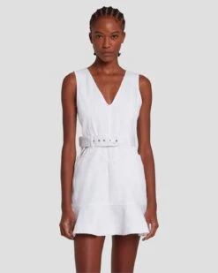 7 For All Mankind Denim Flounce Dress Mini In Brilliant White
