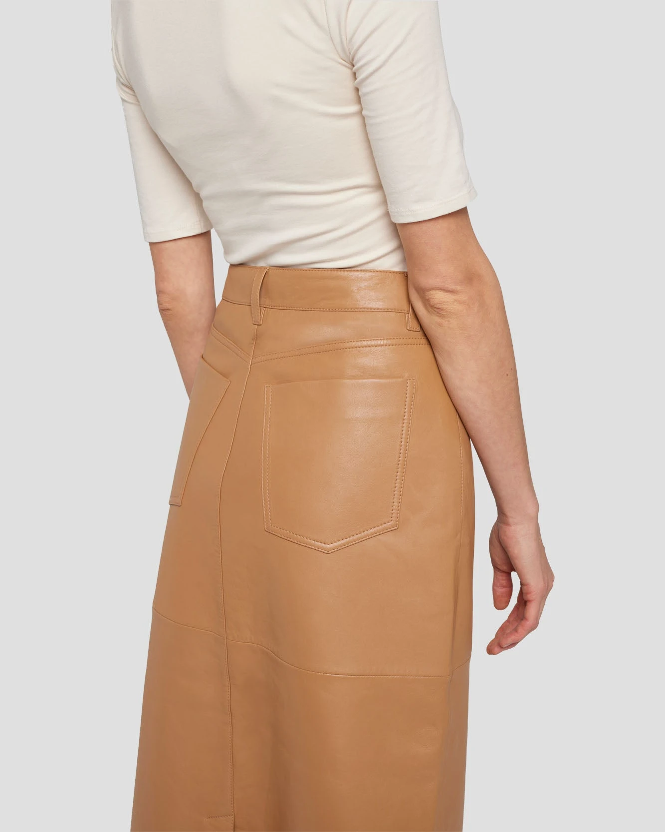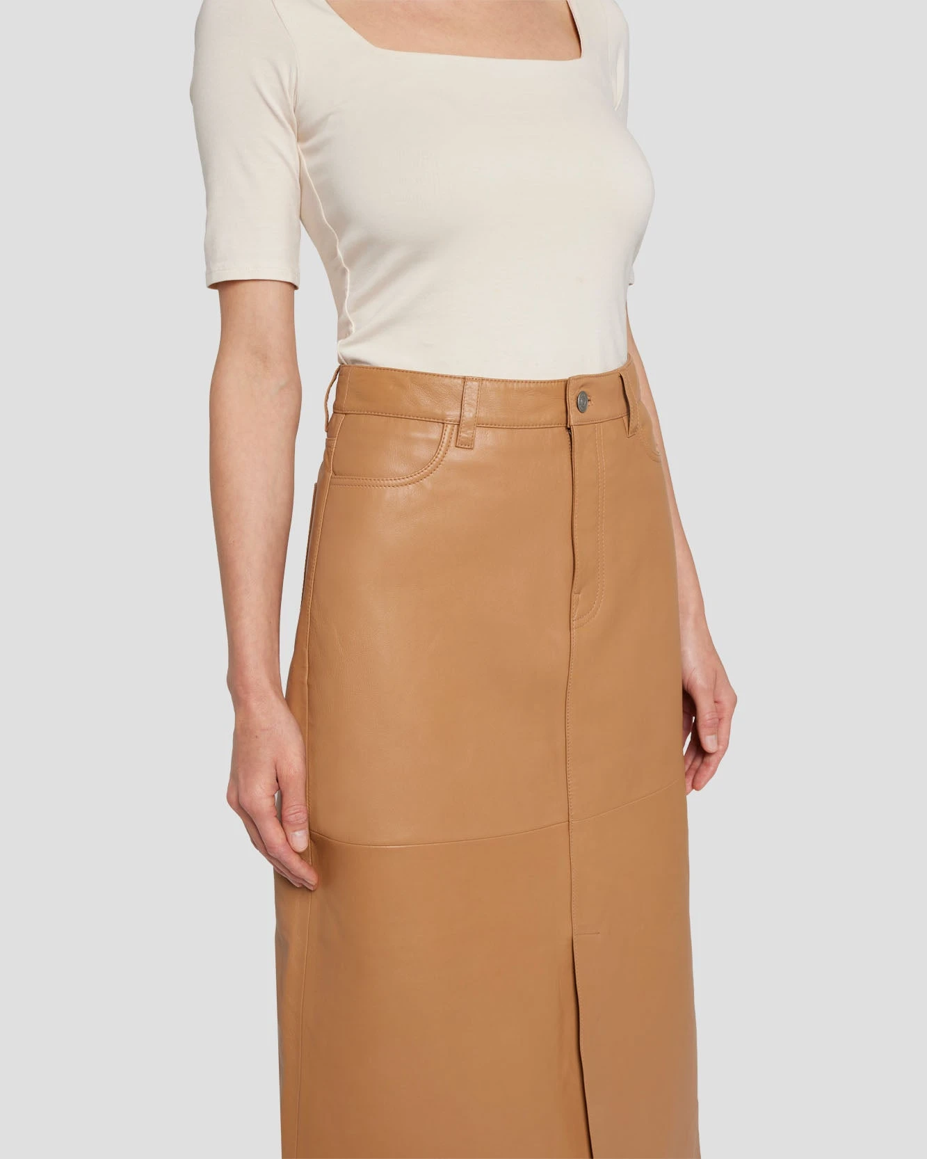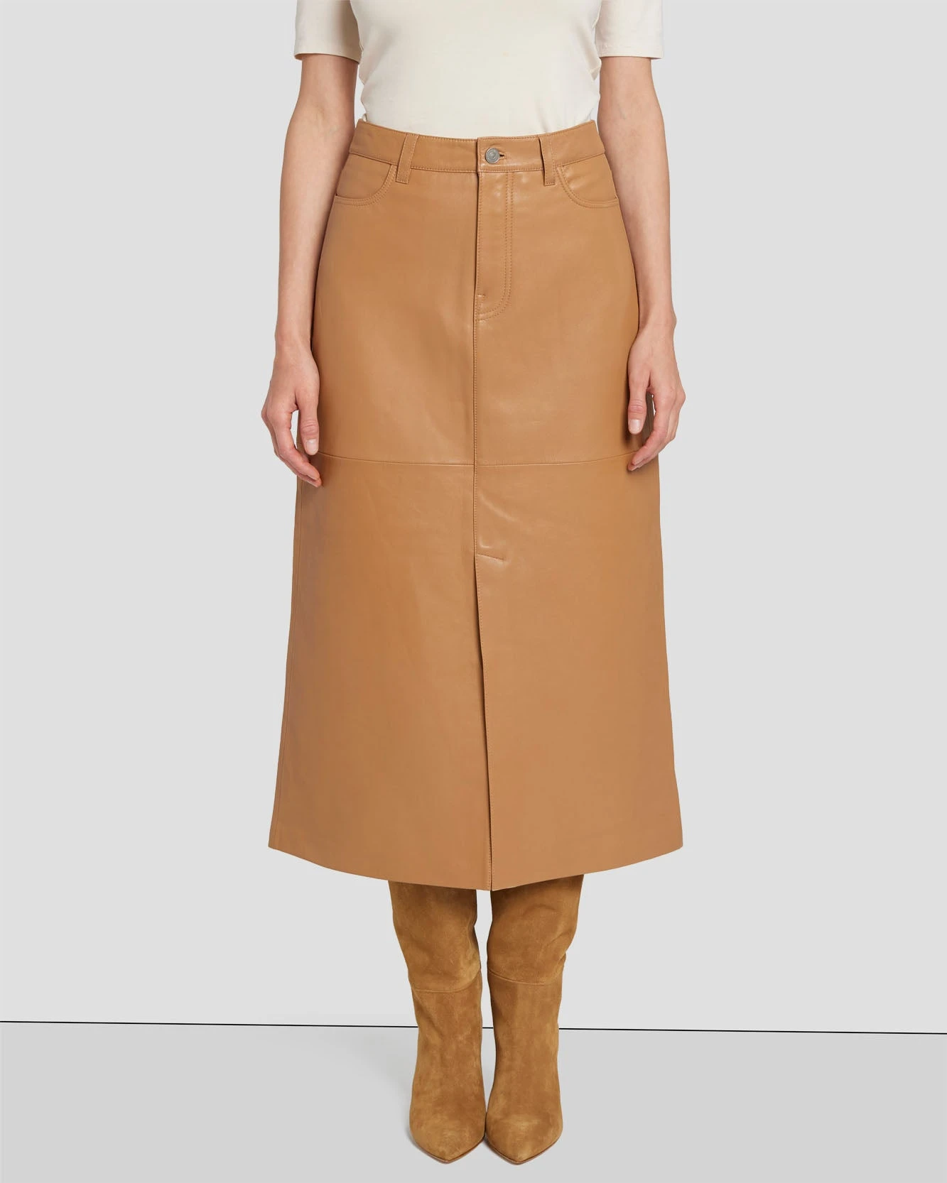 7 For All Mankind Leather Midi Skirt In Brown Sugar