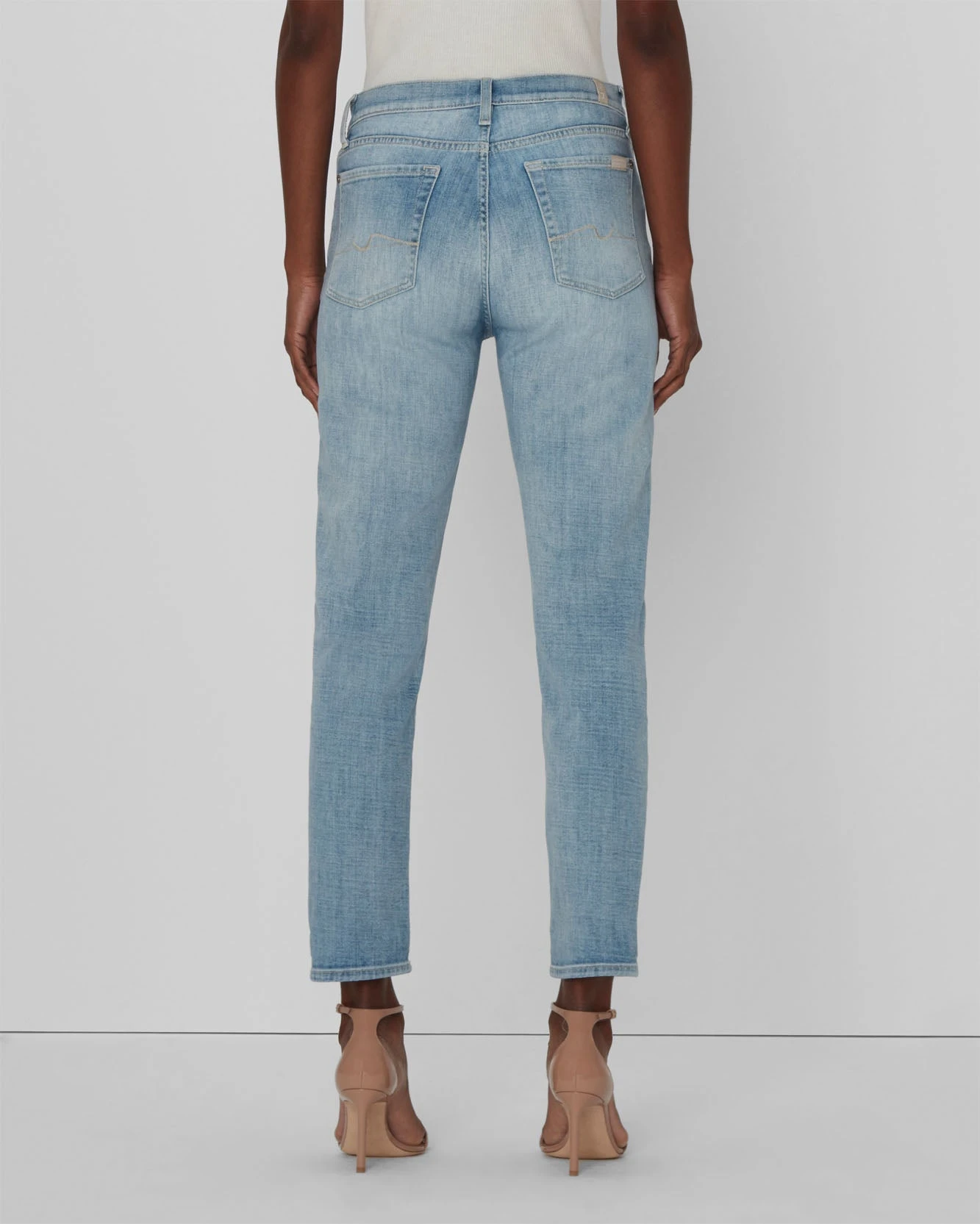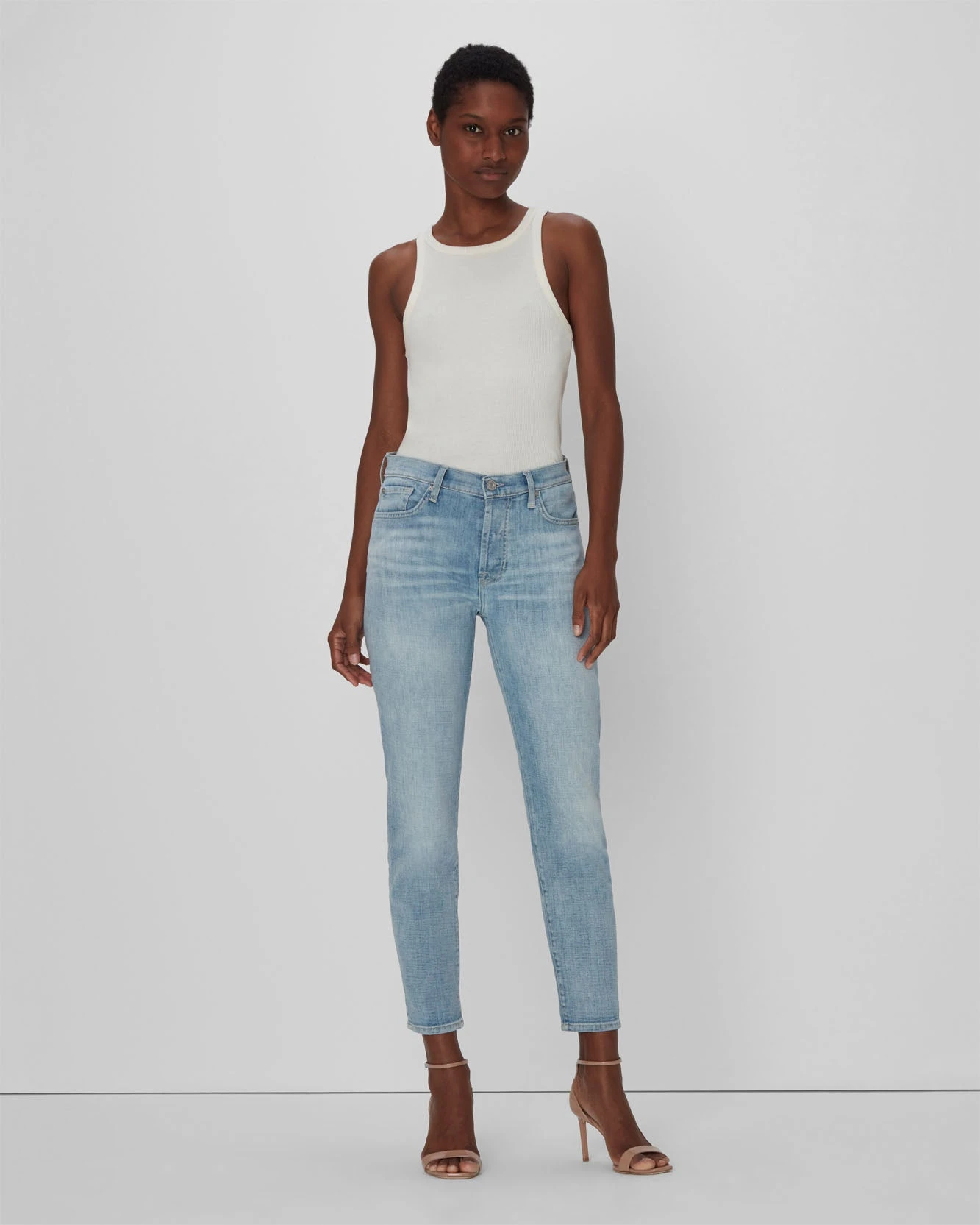 Our well-loved boyfriend silhouette gets an update. Crafted from our latest Left Hand Denim, featuring a reverse weave and ultra-soft feel to create your most comfortable jeans yet. Offered in a bright, faded blue wash marked by whiskering and finished with a button-fly. Keep your style casual with a tee, or pair with a flirty top for date night.