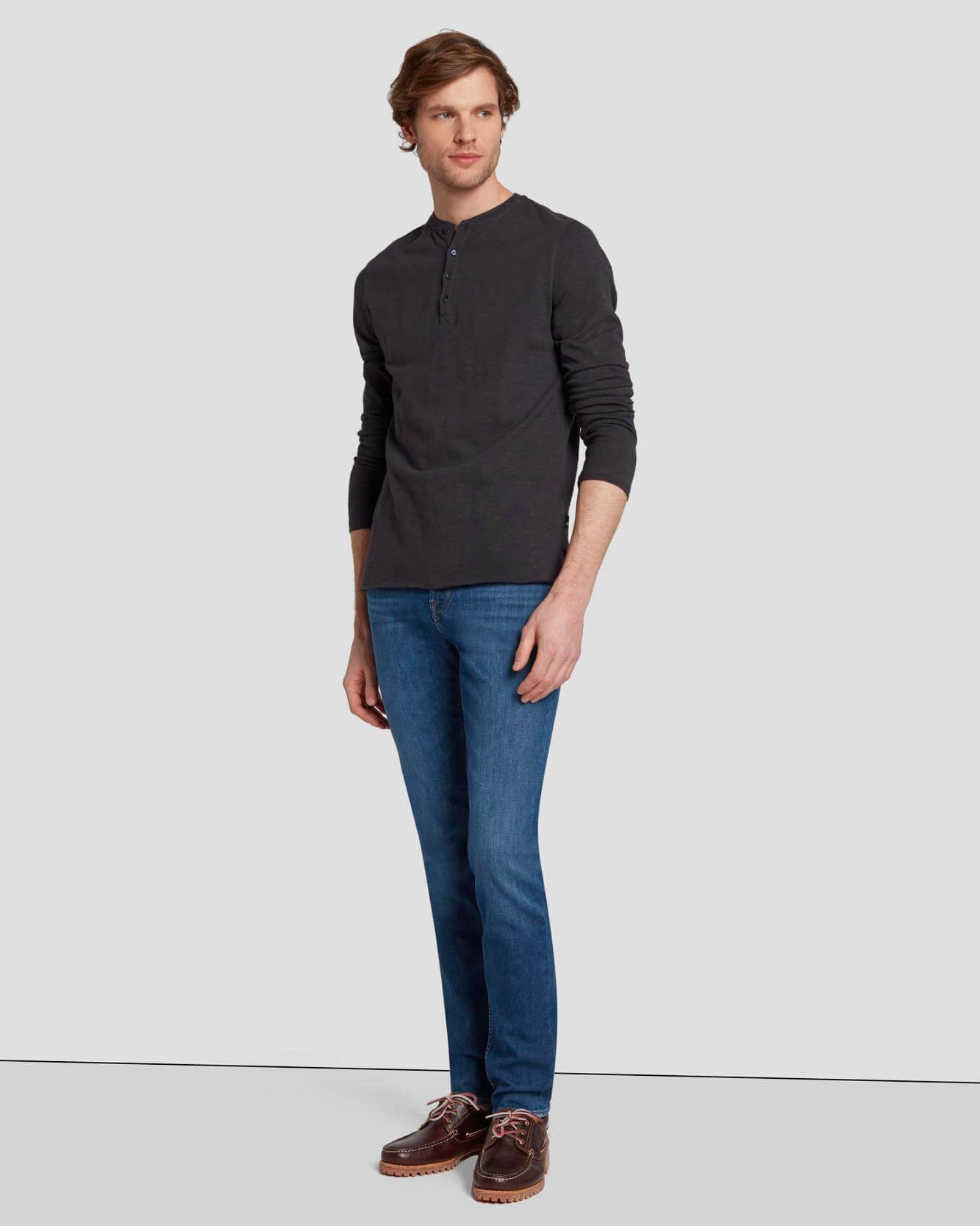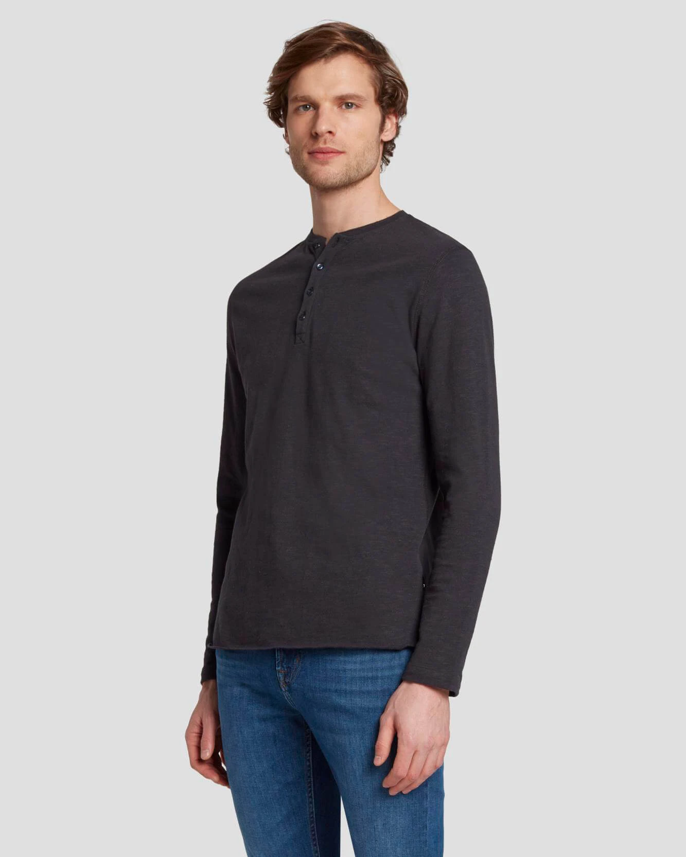 A seasonless wardrobe staple. Our Henley is crafted from 100% cotton and features a raw hem finish. Looks great alone or layered with denim.