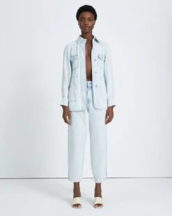 7 For All Mankind Denim Lustre Belted Shirtdress In Dark Indigo