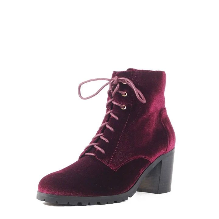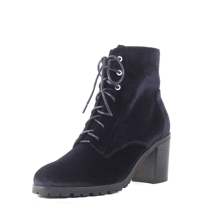 Let’s talk about velvets. I mean, who can say no to a velvet bootie? The elegant lace up with the inner zipper and lug sole gives you the comfortable feel you need to wear this beauty all day. These TIMOTHY velvet heel booties by Chelsea Crew are your perfect retro look.